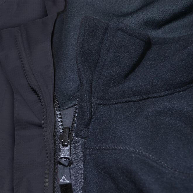 O tecido externo, macio e texturizado, é impermeável (não deixa a chuva passar) e respirável (permite que os vapores da transpiração passem pelo tecido). Completando o conjunto de proteção, o fleece interno, feito em tecido grosso e tratamento anti-pilling, retém o calor do corpo.