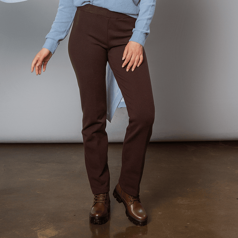 Modelo clássico, consagrado em todas as coleções de inverno, com cós largo de elástico, corte reto nas pernas, sem bolsos ou qualquer detalhe.