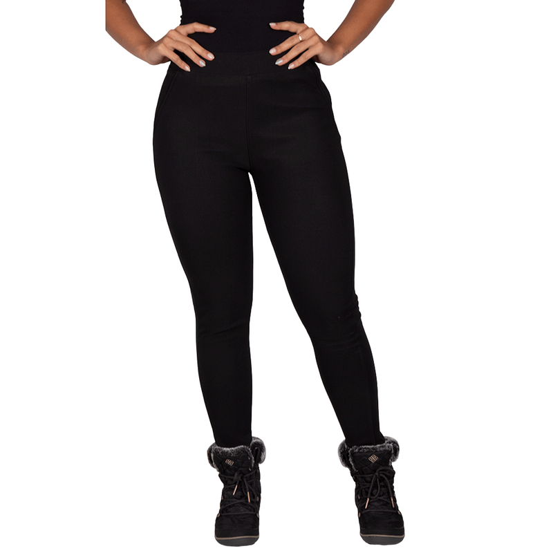 O conforto térmico é evidenciado pelo forro em plush, material macio e aveludado. Seu estilo tradicional é realçado pela modelagem com cintura alta e cós duplo de ajuste na cintura. Detalhes pespontados nas laterais simulam a presença de um bolso. Uma sutileza e um toque extra no elegante design deste modelo de calça de inverno feminina .