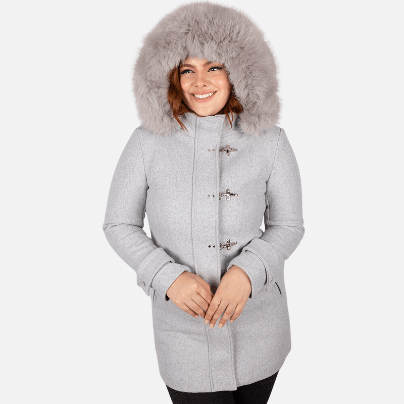 O glamour e a sofisticação imperam neste modelo de casaco de inverno ao explorar os efeitos especiais e arrebatadores da pele que envolvem o capuz do modelo. É impactante o resultado que o volume e a textura sedosas dos pelos provocam na apresentação do casaco, simplesmente similares aos naturais!
