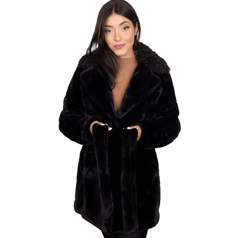 Fabricado inteiramente em pelo sintético, além de mantê-la aquecida e belíssima em qualquer ambiente, este casaco oferece um conforto único. A gola esporte é desenhada com um decote em V na parte frontal e uma textura franzidinha na parte de trás, adicionando um charme extra.