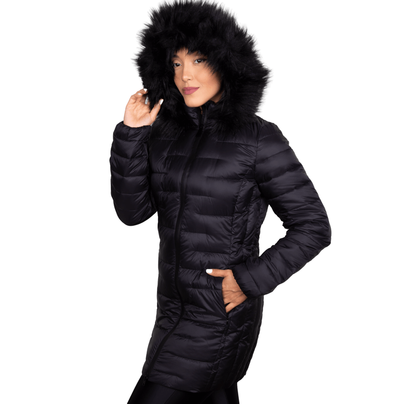 O ótimo caimento é enfatizado pelo matelassê vertical nas laterais, o que valoriza o corpo feminino com primor. O comprimento é mais alongado, ficando abaixo do quadril. Traz consigo um zíper de fechamento até a gola e dois bolsos laterais, fechados por zíper e bem discretos.
