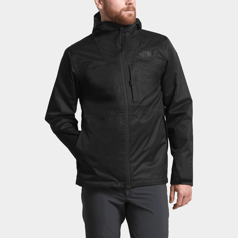A jaqueta externa é altamente qualificada em ser impermeável, com tecnologia DryVent, garantindo 100% de proteção caso entre em contato com a água, além de ter as costuras seladas para maximizar o desempenho do produto. Seu tecido de alta performance, tecnológico e com o selo de qualidade The North Face, é ainda respirável e corta-vento. A peça contém 3 bolsos com zíper e um capuz totalmente ajustável.
