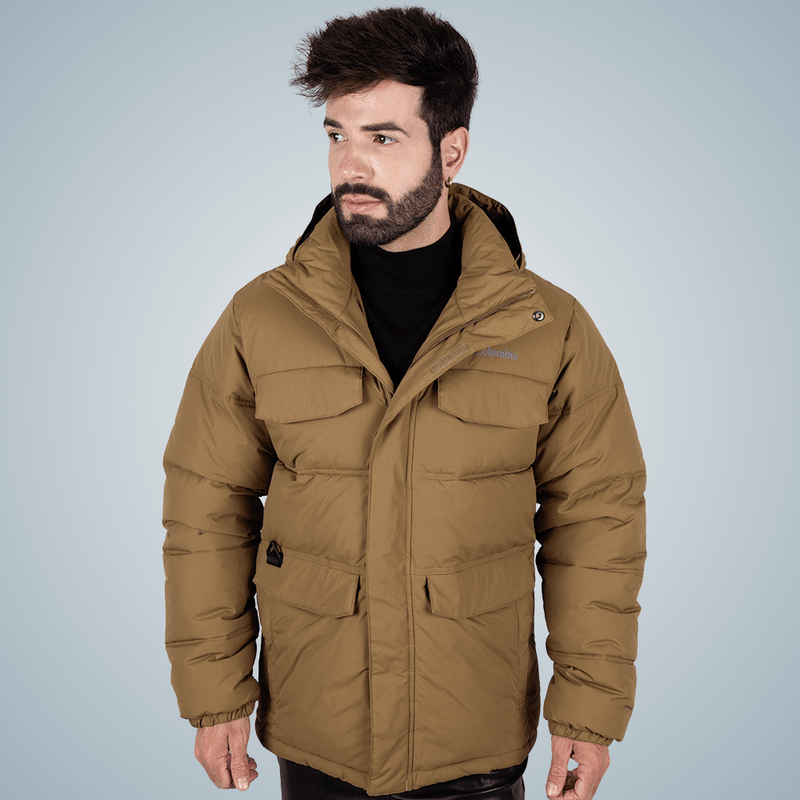 Jaqueta de inverno doudoune masculina produzida pela Columbia com materiais de alta performance e tecnologias inovadoras para garantir o máximo de desempenho térmico em diversas situações de frio intenso