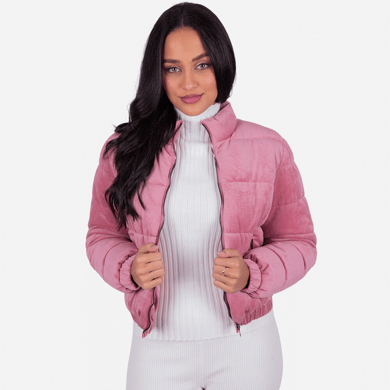 Os modelos de jaqueta bomber ou cropped prometem ficar em evidência em toda a estação de frio. Observe os detalhes perfeitos desta jaqueta de inverno feminina. Produzida com tecido aveludado, similar ao cotelê, destaca o volume em gomos horizontais do enchimento em fibras sintéticas. Aliado ao forro de veludo garantem ótima capacidade térmica. A gola alta e forrada oferece a essência aconchegante e moderna dos cenários com baixas temperaturas!