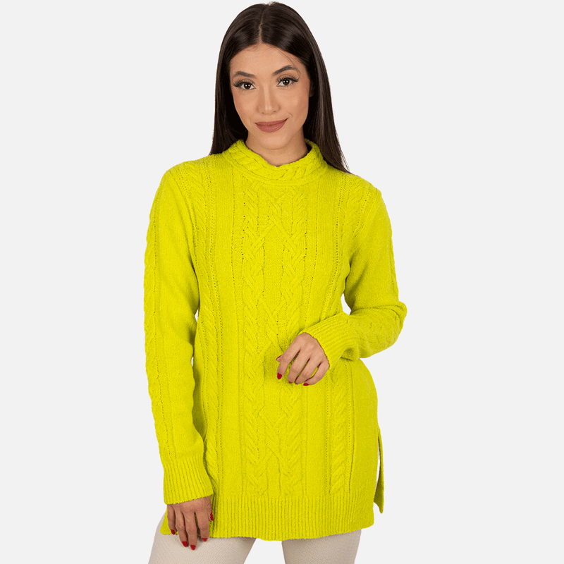Produzido em design inspirador, a malha em fios acrílicos une qualidade, durabilidade e versatilidade. Na parte frontal e nas mangas, a malha de tricô recebe um design com tranças em alto relevo com uma proposta romântica e delicada. A gola levemente alta também é adornada pelas encantadoras tranças, uma estética bem original e marcante.