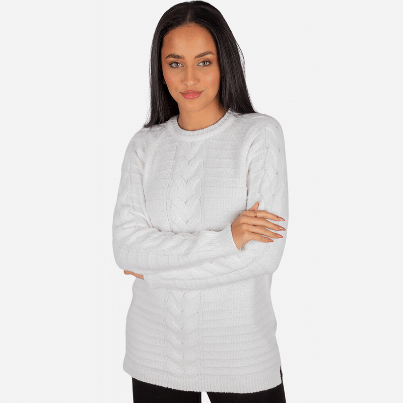 Seu design reflete o quanto esta peça é imponente! Uma trama de tranças em alto relevo na parte central da blusa e das mangas é a principal protagonista. Linhas horizontais agregam ainda mais personalidade e formam uma estampa única! A gola redonda remete a um decote elegante e delicado.