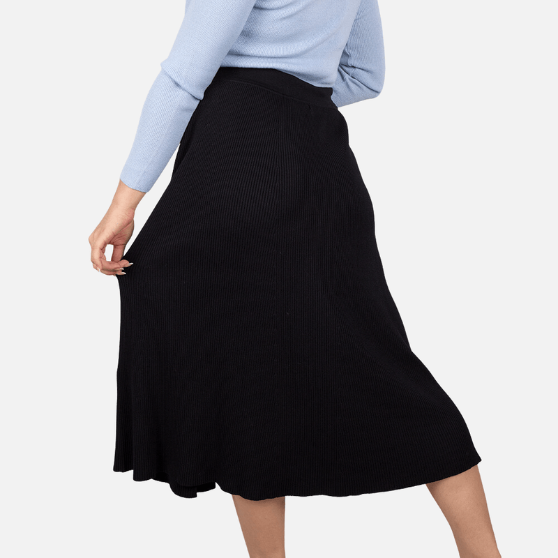 Com design romântico e delicado a saia canelada em tricô de modal oferece um caimento sofisticado e impecável, com sua modelagem evasê. Das passarelas ao street style, esse modelo já está consolidado nas principais coleções de Inverno/Outono!