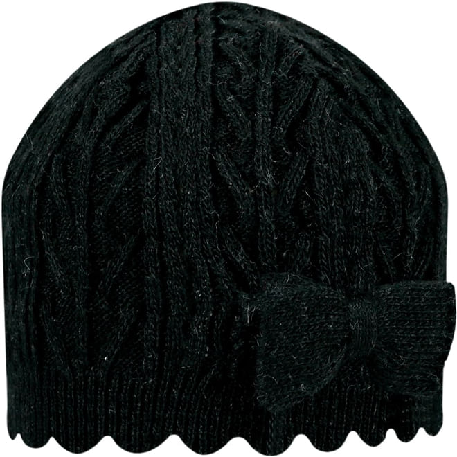 Touca em malha de tricô com apliques laterais em alto relevo de laço e um lindo barrado na borda inferior. Modelo ideal para o máximo de proteção e conforto em dias de frio. O formato privilegia o abrigo dos ouvidos contra a entrada de vento e frio, além de ser todo forrado do mesmo tecido,